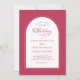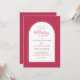 Elegant magentaröd bröllopsdesign med modern kalligrafi och typsnitt i magenta arrangerade i en vacker chic samtida välvd ram. Den stilrena ramen framhävs av en elegant tunn vit ram. En modern mall för datum och år kompletterar den unika kalligrafidesignen och parets för- och efternamn. Baksidan av inbjudan är enfärgat magentaröd. E-post invitationsuites@gmail.com med frågor eller anpassade förfrågningar.