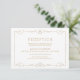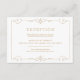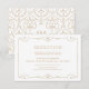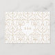 Elegant och utsmyckad virvelramsdesign i guld på redigerbar vit bakgrund. Damaskusmönster med monogramdesign på baksidan, modern, elegant och klassisk, perfekt för vintagebröllop, art deco-bröllop året runt. Redigerbar bakgrundsfärg som passar din brölloppsfärgtema. Anpassa ditt eget mottagningskort för din bröllopsinbjudan. Se alla matchande delar i denna "Gold Modern Classy wedding"-samling nedan.