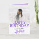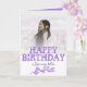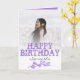 Det här födelsedagskortet är enkelt och elegant och har söt lila typografi med en vattenfärgad foliemotif. Enkel att anpassa med fotot på framsidan och redigerbar text inuti.