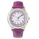 Designad för den unge som lär sig att läsa tiden, har ansikte i klockan en tydlig läsbar uppringning och roligt coola snyggt snurrar färg. Timmen och var femte minut skrivs tydligt medan femminutersindelningen markeras med en kort-linje för att hjälpa barnet att lära sig att läsa tiden med lätthet. Anpassningsbar, personlig, ungflickor coola snyggt elegant modernt läderband av lila, fodral av rostfritt stål, handklocka. Skriv bara i namn. Skapa en underbar, anpassningsbar vakt för den lila flickan i ditt liv. Dotter, syster, systerdotter, barndotter, guddotter, styvdotter. Gör en underbar anpassningsbar till en personlig gåva till födelsedag, studenten, julklappar, helgdagar med mera.