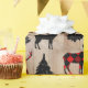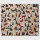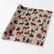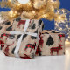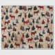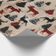 Elegant modern glad helg som är papper med älg, julgranar, svart och rött lumberjack/plaid mönster, renar och fallande snö.