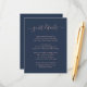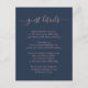 Ge dina gäster viktig information med detta eleganta marinblå och rosafärgade bröllopsinkluderingkort med modernt typsnitt. Matchande artiklar finns tillgängliga. Anpassade förfrågningar välkomnas.