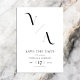 Modern minimal svartvit inbjudan till Bröllop spara datum. Har elegant monogramtypografi och minimal grafisk design. Anpassa texten med all information om din speciella dag.