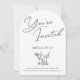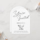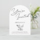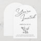 Fira med stil med denna chic och moderna bågformade inbjudan med elegant skrivstil som tillkännager "You're Invited" tillsammans med en ren sans-serif-teckensnitt för festdetaljerna. Illustrerade cocktails tillför en lekfull touch, vilket gör denna perfekt för stora födelsedagar eller sofistikerade sammankomster. Den monokroma svart-vita designen utstrålar tidlös charm, medan det välvda formatet ger en trendig, unik prägel. Anpassa detaljerna för en personlig inbjudan som är perfekt för en 21-årsfirande eller någon annan speciell tillställning.