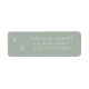 Modern bröllop-returadressetikett med elegant minimalistisk monogramtypografi.