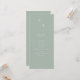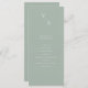 Modern grönt bröllopsprogram med minimal typografi i monogram.
