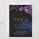 Elegant Modern Moody Black Lila Blommigt Bröllop Inbjudningar