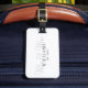 Den här chicen svartvita bagagetaggen har modern elegant typografi och kan vara personlig med ditt namn, speciella datum, adress och kontaktuppgifter. Designad av Thisisnotme©