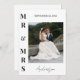 Fira din speciella dag i stil med det här klassiska och elegant personlig bröllop-fototackkortet. Med fet stil "Mr. Och fru"-designen som har parats med ditt nya gifta namn i ett blomstrande kalligrafiskt skript, detta moderna minimikort är perfektens sätt att er tacksamhet mot familj och vänner. Baksidan innehåller ett förtryckt tackmeddelande som du kan anpassa helt och hållet för att återspegla din hjärtliga uppskattning för gästernas kärlek, support och tankeväckande presenter. Lägg till ditt favoritfoto från bröllop för en personlig beröring som kommer att uppskattas av alla som tar emot det. En tidlös nyckelfråga som kombinerar sofistikering med känslor. Besök vår butik www.zazzle.com/store/Personal_Creations om du vill ha matchande design.
