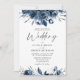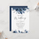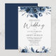 Elegant Modern Navy Blue and Silver Floral Wedding Inbjudningar