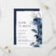 Elegant Modern Navy Blue Floral & Photo Wedding Spara Datumet