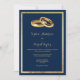 Elegant modern navy blue gold rings Wedding Inbjudningar