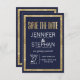 Elegant, snyggt och modern faux-tryckt guld-sekvenskontur och marin blå bakgrund med faux-tryckt guld-folie-typografi, Spara-the-Date bröllop-kort. Denna klassiska och sofistikerade utformning är perfekt för det trendig och det snyggt som gifter sig. Anpassa med ditt eget meddelande på framsidan och en anpassad inledande monogram på baksidan. All fotoutskriftsdesign.