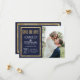 Elegant, snyggt och modern faux-tryckt guld-sekvenskontur och marin blå bakgrund med faux-tryckt guld-folie-typografi, Spara-the-Date bröllop-kort. Denna klassiska och sofistikerade utformning är perfekt för det trendig och det snyggt som gifter sig. Anpassa med ditt eget meddelande på framsidan och en anpassad inledande monogram på baksidan. All fotoutskriftsdesign.