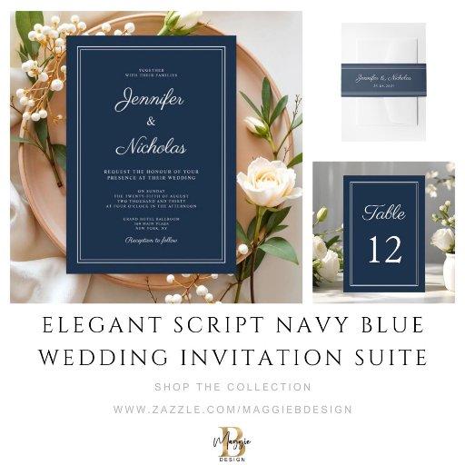 Elegant Script Navy Blue Wedding Invitation SuiteDesignad av Maggie B Design