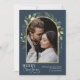 Elegant Modern Navy Guld Greenery Båge Foto Julkort