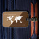 En underbar design för att identifiera dina tillhörigheter. Världens karta i en halvbrun/halvljus brunaktig bakgrund