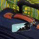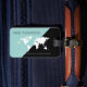 En underbar design för att identifiera dina tillhörigheter. Världens karta i halvblå/halvsvart bakgrund