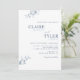 Modern elegant bröllopsinbjudan med samtida typografi och subtila, fint handritade blomdetaljer i blått. Lätt att fylla i mallen. Möjlighet att "redigera med hjälp av designverktyg" och göra ändringar i teckenstorlek, stil, position och till och med färg. Efternamnen är i en dammig blå nyans medan resten av texten är i en djupare blå ton. Finns i flera former och pappersval. Koordinerade kuvert, inklusionskort och resten av brölloppspaketet finns tillgängliga i två olika blå nyanser: djupare blå som texten och dammig blå, samt i vitt med blå text, vilket ger dig friheten att skapa ditt brölloppspaket som du vill. Blanda färgerna eller bygg upp hela ditt brölloppspaket i bara en ton. En del av vår "Modern Elegant Typography Blue Wedding"-samling. Besök hela samlingen här: https://www.zazzle