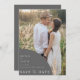 Den här enkla och elegant moderna bröllop spara datum har dina foton och bröllop-detaljer i en grått-design. Kontakta mig om du behöver hjälp eller har en anpassningsbegäran... Jag vill hjälpa till med kärlek.