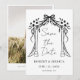 This beautiful, elegant, and modern save-the-date wedding photo invitation card is the perfect choice to tell your guests to reserve the date for your special day! The design features an elegant hand-drawn wedding pergola decorated with flowers, with the ´´Save the Date´´ in handwritten script inside. The text under the photo is in elegant letters. The reverse features your personalized photo, framed in elegant white with a custom text below. Make it yours by pressing the "personalize button", changing the picture, and replacing the text with your information. Your guests will love it!