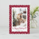 Rött Glad helg-kort med elegant, med stjärnor och en Julhälsningar kalligrafi på framsidan och fallande snö på baksidan. Anpassa enkelt det här stjärnfotokortet med din bild, familj namn och helgdag.