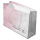 Modern och stilren presentförpackning med falsk rosa roséguld glitter marmoreffekt, vit marmoreffekt och elegant kalligrafi.