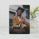Elegant Modern Script Black Guld Photo Studenten Tack Kort