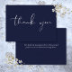 Med elegant tack-du-skript på marinblå bakgrund. Du kan anpassa ditt eget tack till meddelandet på motsatt sida, eller ta bort texten om du föredrar att lägga till ditt handskrivna meddelande. Ett perfekt sätt att säga tack! Designad av Thisisnotme©