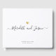 Den här eleganten visar svart och vitt bröllop gäst bok i trendig din namn med manusgrafi med bröllop-datumet nedan och ett tryckt guldhjärta ovanför. Anpassa enkelt ryggraden och byt ut ryggen mot ditt eget favoritfoto. Detta sofistikerade minnesmärke kommer att finnas i komen i flera år.