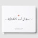 Den här eleganten visar svart och vitt bröllop gäst bok i trendig din namn med manusgrafi med bröllop-datumet nedan och ett utskrivet ro-guldhjärta ovanför. Anpassa enkelt ryggraden och byt ut ryggen mot ditt eget favoritfoto. Detta sofistikerade minnesmärke kommer att finnas i komen i flera år.