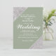 Elegant modern silver glitter om sage grönt med vit manus Bröllopsinbjudan
