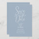 Den här dammiga blåa eleganten-manuset bröllop spara datum kan vara personlig med all speciell bröllopsdag-information. Designad av Thisisnotme©