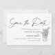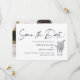 Elegant och enkel modern skript "spara datum" med vilda blommor i en burk. På baksidan av kortet lägg till ett speciellt foto.