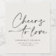 Lägg till lite elegans i firande med den moderna svarta och vita etiketten vin flaska med den handskrivna skriptfrasen "Cheers to Kärlek". Perfekt för bröllop, årsdagar, förlovningsfester, möhippor eller romantiskt tillfälle. Anpassa med ditt namn, datum eller speciella meddelande för att skapa en snyggt som dina gäster kommer att i kärlek. En enkel men sofistikerad design som passar perfekt ihop med vilket tema som helst.