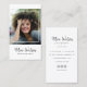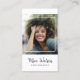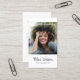 Moderna och professionella visitkort för fotografer med ditt foto i en enkel vit ram och trendig minimalistisk skripttypografi. Lägg till din kontaktinformation på baksidan. Denna stilrena design innehåller tre sociala media-ikoner och ett fält för ditt användarnamn.