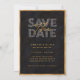 Letar du efter ett chic modernt bröllop "save the date"? Titta på vår Chic Moderna Svarta och Gyllene Lyxiga Foto Bröllop "Save the Date"! Denna fantastiska bröllops "save the date" har en djärv, modern typografi med en slående digital guldeffekt på ramen och ordet "The". Orden "save" och "date" glänser med en fängslande digital diamanteffekt, vilket ger en extra touch av lyx. Mot en snygg svart bakgrund utstrålar denna design elegans och sofistikation, perfekt för par som söker en klassisk, modern stil som sticker ut. Idealisk för en glamourös, exklusiv fest!