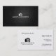 Elegant och enkel professionellsvart och metalliska silverfotografivisitkortar. Svart fibermönster för elegant med DSLR-kameralogotypen. Tillfoga din egna logotyp!