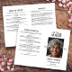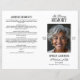 Prisvärda minnesprogram med svart-vit layout som erbjuder ett värdigt och budgetvänligt alternativ för minnesstunder. Denna design för begravningsprogram innehåller ett stort foto på framsidan med fullt redigerbar elegant serif- och scripttypografi på en minimalistisk vit bakgrund. Layouten är genomtänkt indelad för att inkludera ett förslag till ordning för ceremonin och en dödsruna, och baksidan har utrymme för tack eller annan text, vilket ger allt viktigt innehåll i ett enda vikt kort. Perfekt för familjer som söker budgetvänliga trycklösningar för begravningar utan att kompromissa med stil eller personlig anpassning, säkerställer denna enkla och smakfulla design en respektfull hyllning som är både ekonomisk och vacker.