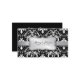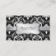 Damastast mönster för elegant och modern svartvit vintage med det metalliska bandet för silver. Yrkesmässiga visitkortar för all affärstyp. Perfekt för bröllopsfixaren, inre formgivare och mer. Tillfoga din egna beställnings- text.
