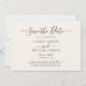Modern calligraphy-skript för elegant täcker över ett bröllop spara datum-meddelande-kort. Chicens minimalistiska designmall innehåller 1 text med text "Spara datum"-övertäckning för foto och elegant. Då sparar du det fördefinierade meddelandet. Kontakta mig om du behöver hjälp eller matchande artiklar.