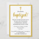 Elegant, modern VUXEN BAPTISM-inbjudan, visar att jag får BAPTIZED plus anpassade. Huvudvägen är Faux guld. Det finns platshållartext på motsatt sida, som bygger på 2 korintianer 5:17 - ny skapelse i Kristus, och som kan ersättas med ytterligare uppgifter om firande.