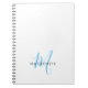 Elegant Modern White Himlar Blue Script Monogram Anteckningsbok