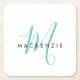Elegant Modern White Teal Script Monogram Underlägg Papper Kvadrat