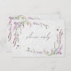 Söt och delikat, det här trendiget är blommigtens svarskort på bröllopsinbjudan med OSA innehåller delikat handmålat vattenfärgsmönster i nyanser av lila, lavc och lavender, med handskrivet manustypografi på en faux-handgjord bra konst pappra struktur. På baksidan av OSAN kan de inbjudna gästerna svara och fyra val kan göras för platta måltider. OM DU VILL TA BORT MEAL-VAL kan du visa vår hjälpsamma video här: https://youtu.be/ZGpeldQgxoE Kontakta designern för matchande produkter och visa hela bröllop-sviten här: https://www.zazzle.com/collections/elegant_modern_wildflower_watercolor_art_paper-119612444411079619. Copyright Anastasia Surridge for Elegant Inbjudan, alla höger reserverade sig.