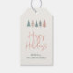 Skandinaviska Juletiketter i stil visar pastellskript för träd och Glad helg.