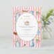 Den här eleganten och klassens möhippa brunch inbjudningskort för möhippan är perfekt för en möhippa. Den moderna designen har en klassisk rosa- och vit rand-bakgrund med tillagda konditorimotiv med enkel och elegant svart- och guld-typografi. Sök efter andra matchande eller samordnande bröllop-stationer i resten av samlingen.