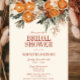 Den här eleganten, den elfenbenscitrusfruktsorten blommigt inbjudningskort för möhippan, har en grön blommigt på julen. Orangar som visas i bränd orange med kanel och höstblommor. All text kan ändras. Mörk Bakgrund för bränd Orange är valfri.