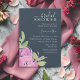 Vi presenterar en exquisite and contemporary Inbjudningskort för möhippan, som är försedd med fantastiska ursprungliga vattenfärgshärdar av rosa ros och lush grönt löv som är inställda mot en sofistikerad mörk blått bakgrund. Den här inbjudan har romantisk modern typografi, vilket gör att du kan anpassa den efter dina önskemål. Perfekt för att fira den blivande bruden med elegans och stil.