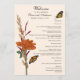 En perfekt brände orange dahlia med vetestjälk och botaniska fläckar på detta bröllopsprogram med marschsmörflugor. Programmet ge innehåller alla viktiga detaljer från er speciella dag. Den här naturen inspirerade till fall-bröllop är både rustik och chic. Samlingen utövar elegans och naturskönhet. Låt denna harmoniska höstblandning av färg och utformning skapa ett oförglömligt firande.